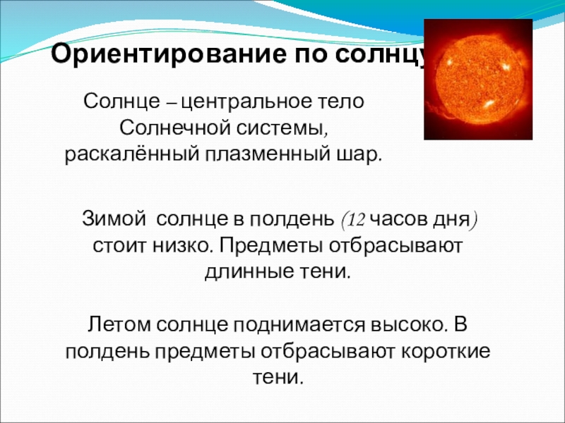 Летом солнце поднимается высоко. В полдень предметы отбрасывают короткие тени.