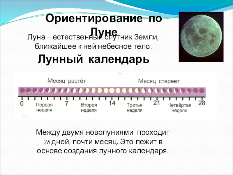 Между двумя новолуниями проходит 28 дней, почти месяц. Это лежит в основе создания лунного календаря.