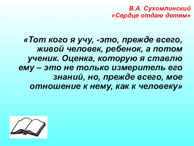 а потом ученик. Оценка, которую я ставлю ему – это не только измеритель его знаний, но, прежде всего, мое отношение к нему, как к человеку»