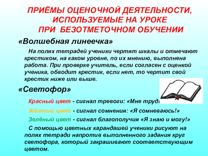 Слайд 7ПРИЁМЫ ОЦЕНОЧНОЙ ДЕЯТЕЛЬНОСТИ, ИСПОЛЬЗУЕМЫЕ НА УРОКЕ