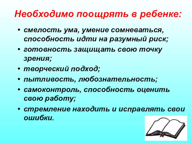 Необходимо поощрять в ребенке: