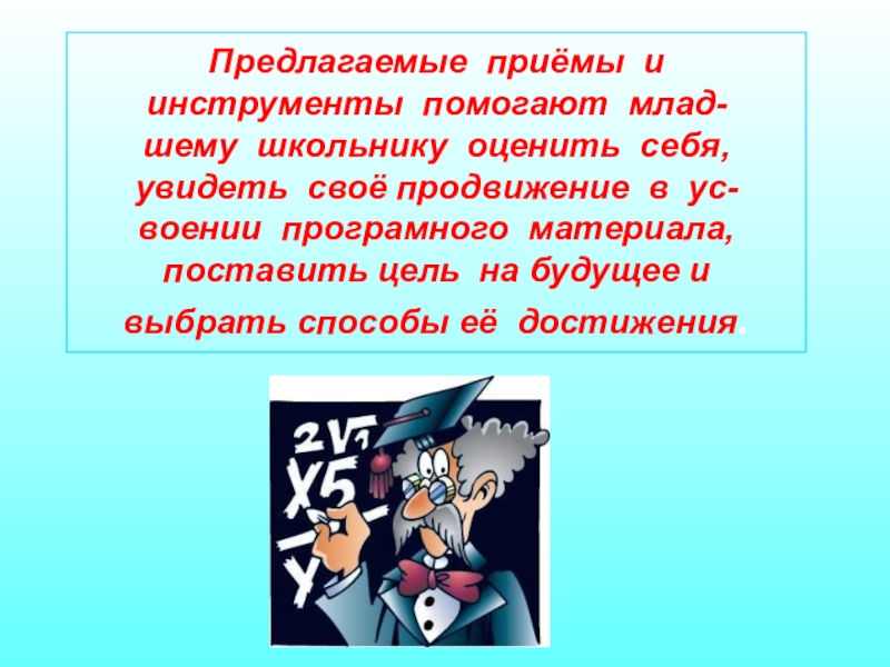 Слайд 6Приёмы по формированию контрольно-оценочной деятельности младшего школьника.