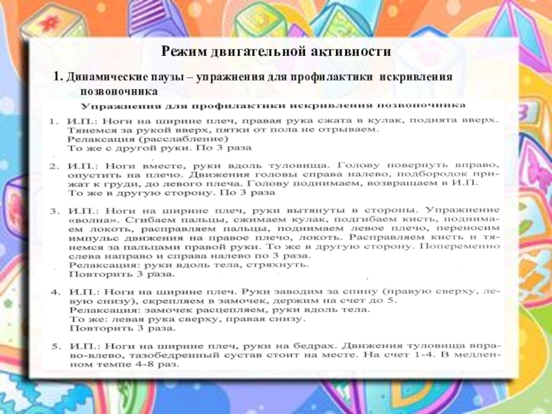 1. Динамические паузы – упражнения для профилактики искривления позвоночника