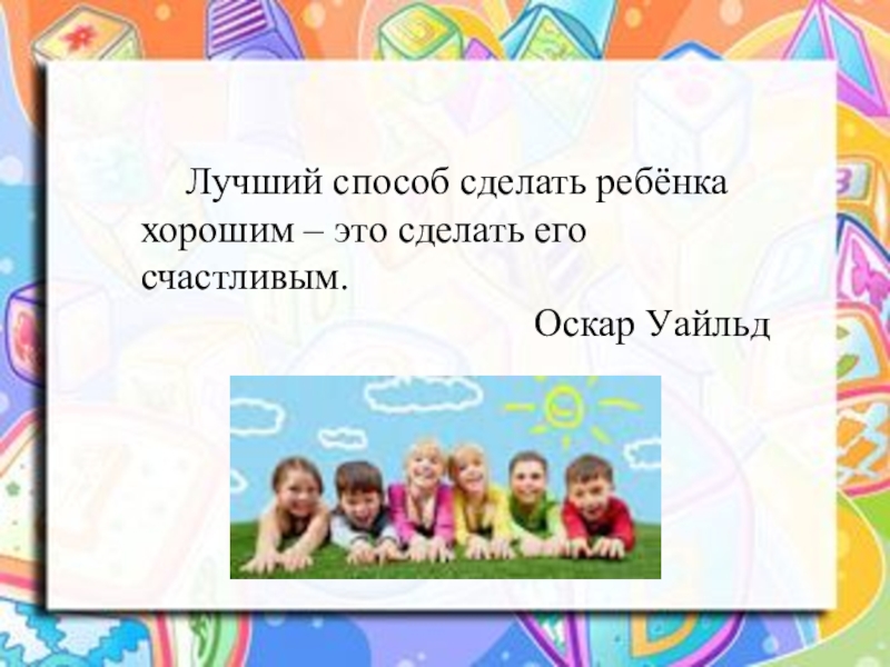 Слайд 2 Лучший способ сделать ребёнка хорошим – это сделать его счастливым.