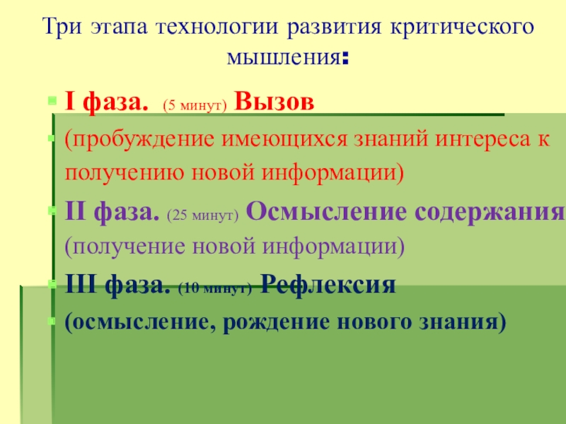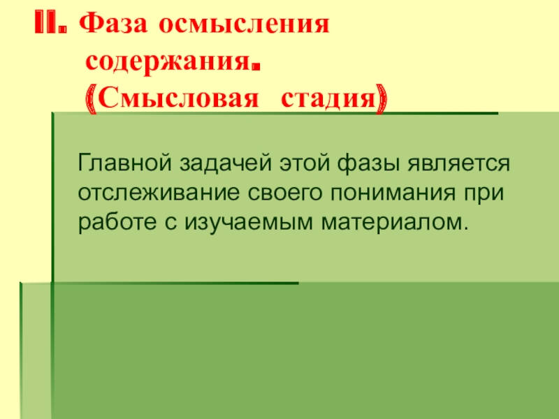 Главной задачей этой фазы является отслеживание своего понимания при работе с изучаемым материалом.
