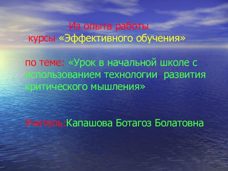 по теме: «Урок в начальной школе с использованием технологии развития критического мышления»