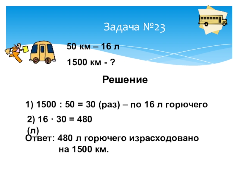 1) 1500 : 50 = 30 (раз) – по 16 л горючего