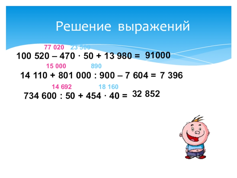 14 110 + 801 000 : 900 – 7 604 =