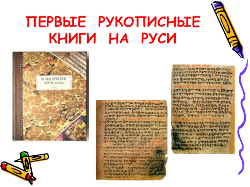 Слайд 3ПЕРВЫЕ РУКОПИСНЫЕ КНИГИ НА РУСИ