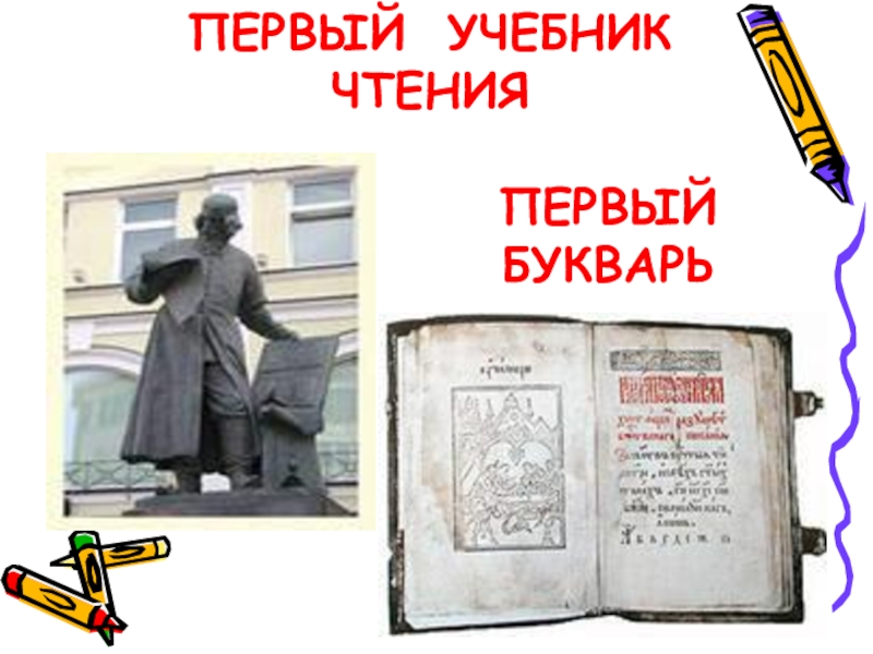 Слайд 5ПЕРВЫЙ УЧЕБНИК ЧТЕНИЯ
