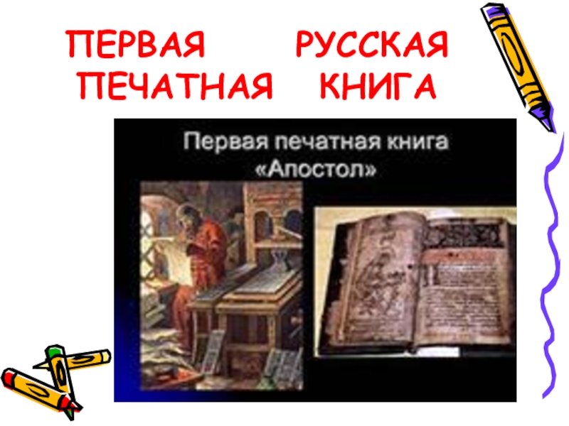 Слайд 4ПЕРВАЯ РУССКАЯ ПЕЧАТНАЯ КНИГА