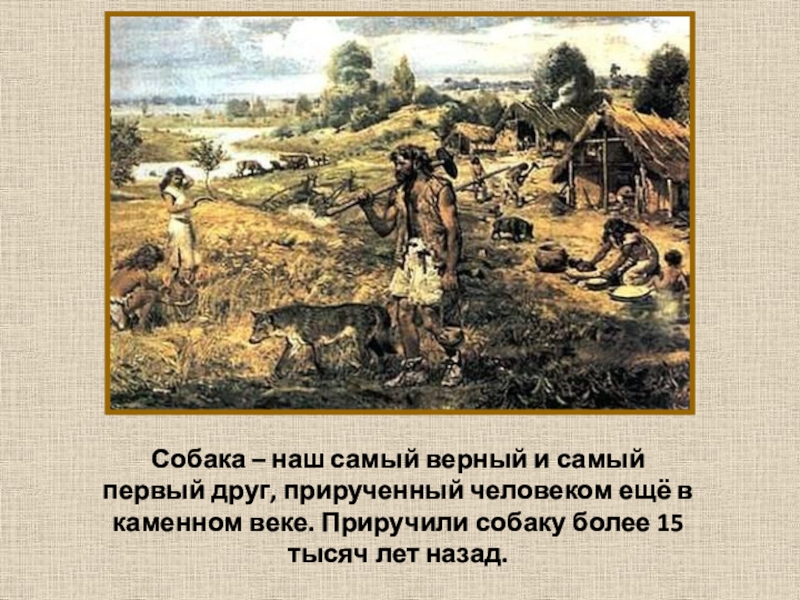 Собака – наш самый верный и самый первый друг, прирученный человеком ещё в каменном веке. Приручили собаку более 15 тысяч лет назад.