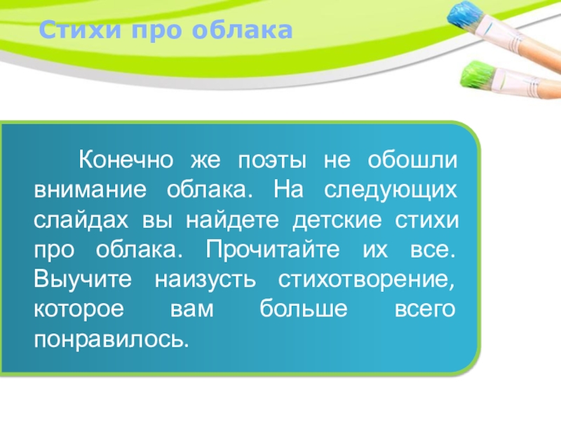 Это сайт презентаций, где можно хранить и обмениваться своими презентациями, докладами, проектами, шаблонами в формате PowerPoint с другими пользователями. Мы помогаем школьникам, студентам, учителям, преподавателям хранить и обмениваться учебными материалами.