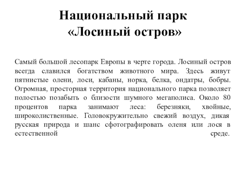 Самый большой лесопарк Европы в черте города. Лосиный