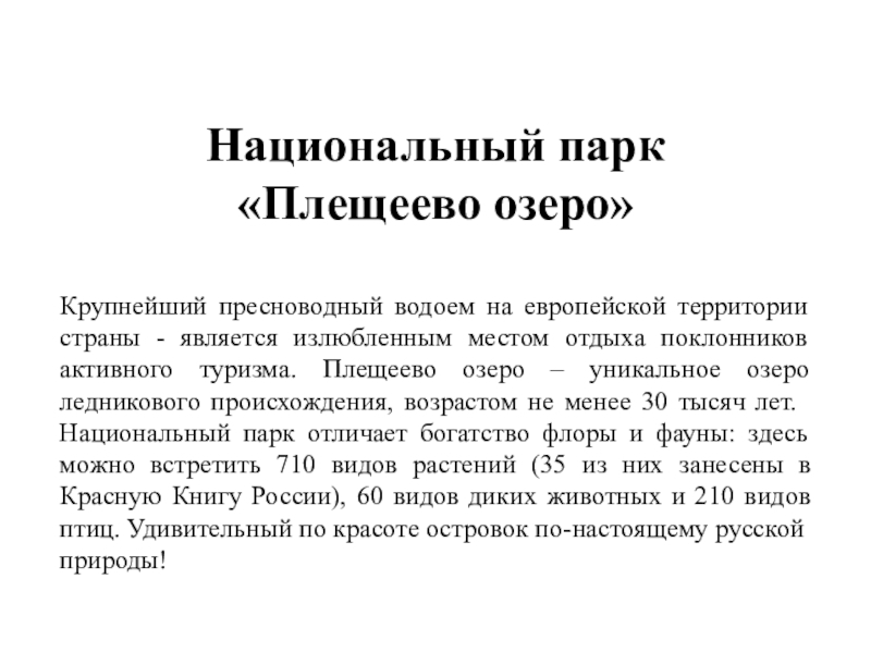 является излюбленным местом отдыха поклонников активного туризма. Плещеево озеро – уникальное озеро ледникового происхождения, возрастом не менее 30 тысяч лет.