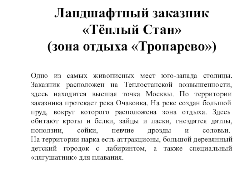 (зона отдыха «Тропарево»)