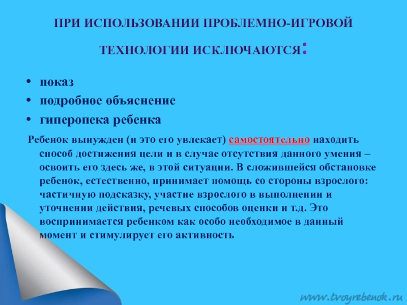 Слайд 5При использовании проблемно-игровой технологии исключаются: