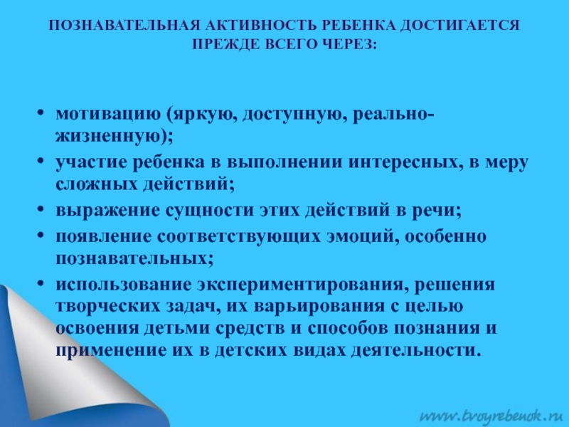 Слайд 6Познавательная Активность ребенка достигается прежде всего через: