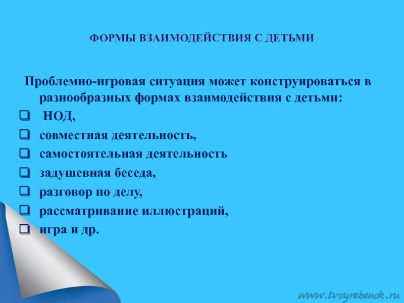 Проблемно-игровая ситуация может конструироваться в разнообразных формах взаимодействия