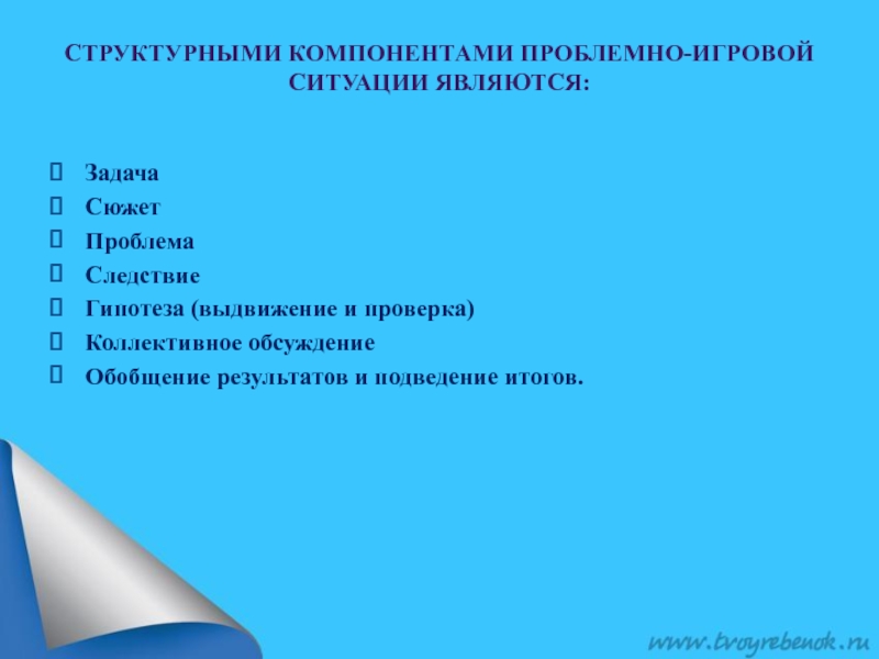 Слайд 8Структурными компонентами проблемно-игровой ситуации являются: