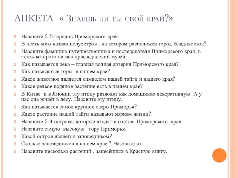 Слайд 32АНКЕТА « Знаешь ли ты свой край?»