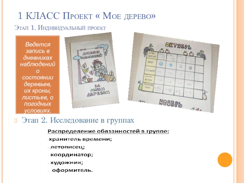 Слайд 15 1 КЛАСС Проект « Мое дерево»