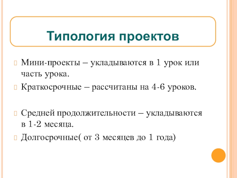 Мини-проекты – укладываются в 1 урок или часть урока.