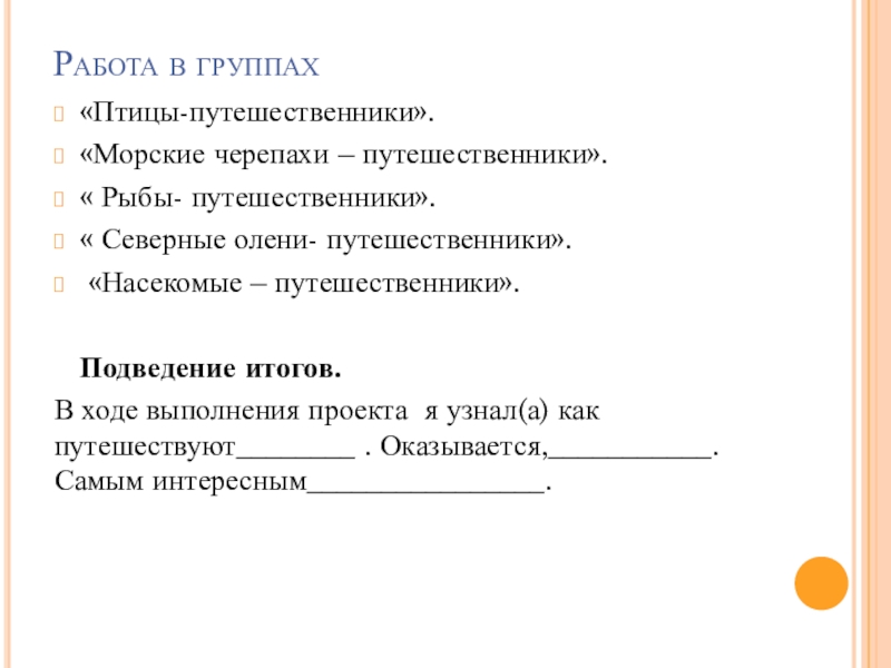 В ходе выполнения проекта я узнал(а) как путешествуют________ . Оказывается,___________. Самым интересным________________.
