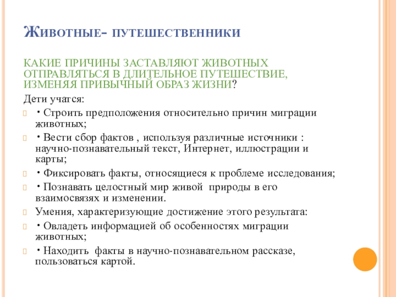 • Вести сбор фактов , используя различные источники : научно-познавательный текст, Интернет, иллюстрации и карты;
