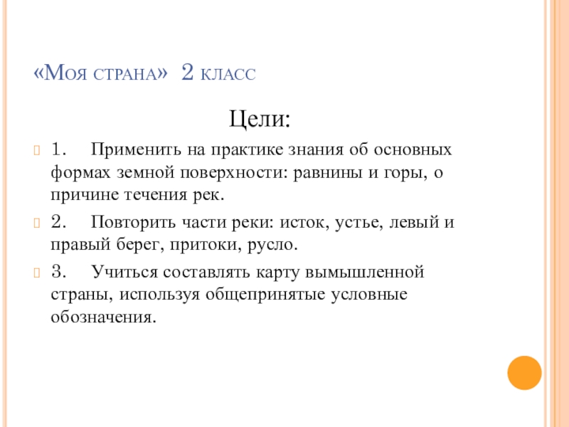3. Учиться составлять карту вымышленной страны, используя общепринятые условные обозначения.