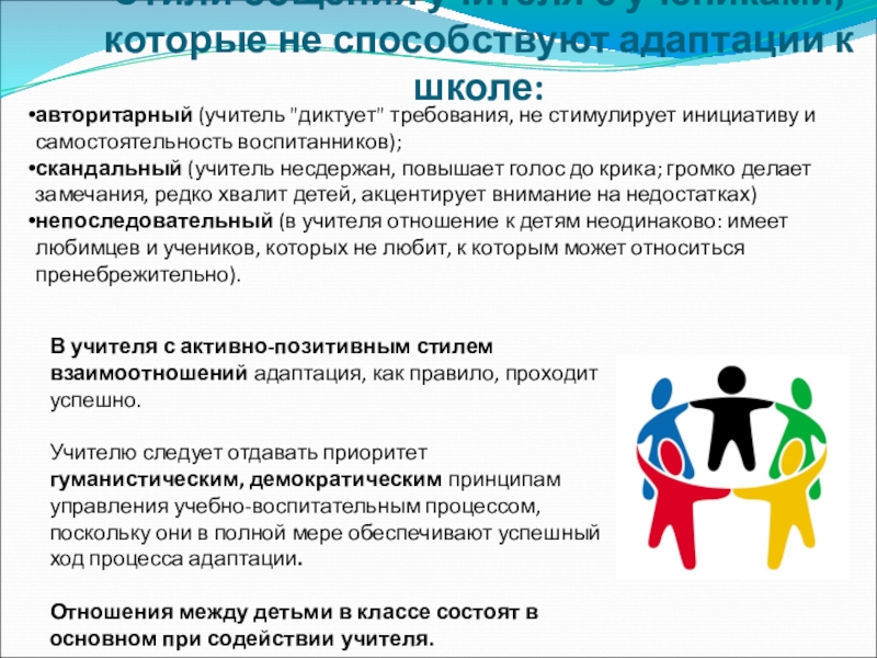 В учителя с активно-позитивным стилем взаимоотношений адаптация, как правило, проходит успешно.