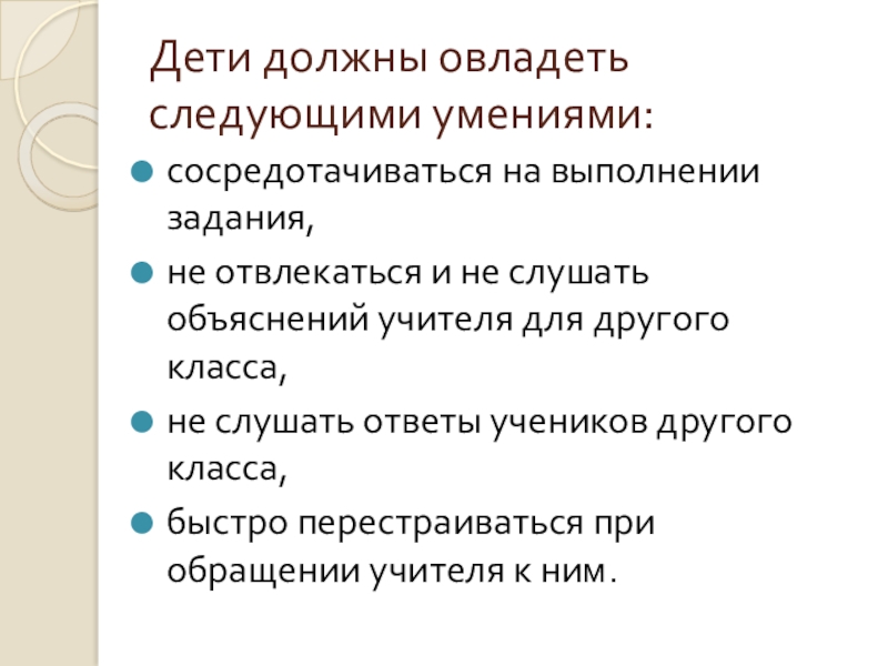 Во 2 варианте снимаются недостатки первого варианта. Ученики 3-го класса умеют работать самостоятельно и время их произвольного внимания (10–12 минут) позволяет учителю организовать выполнение довольно сложных заданий.