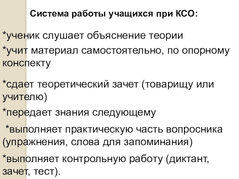 *выполняет практическую часть вопросника (упражнения, слова для запоминания)
