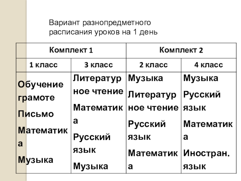 В 3-м варианте - опасность больше уделять времени первоклассникам за счет учеников 4-го класса. Но 4-й класс – выпускной.