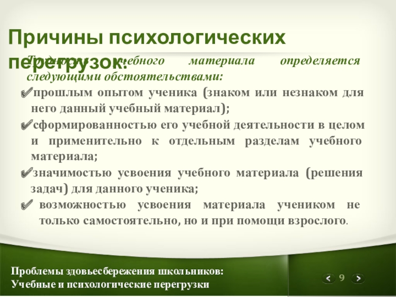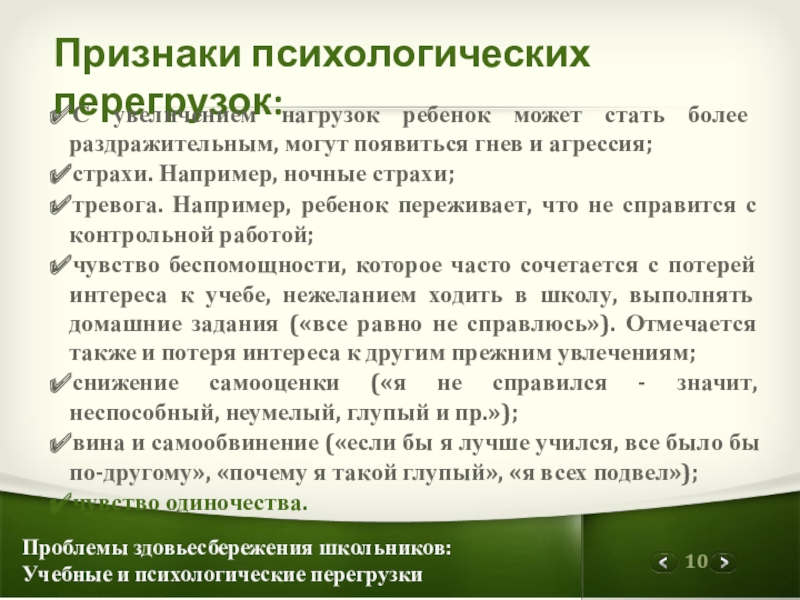 УЧЕБНЫЕ И ПСИХОЛОГИЧЕСКИЕ ПЕРЕГРУЗКИ