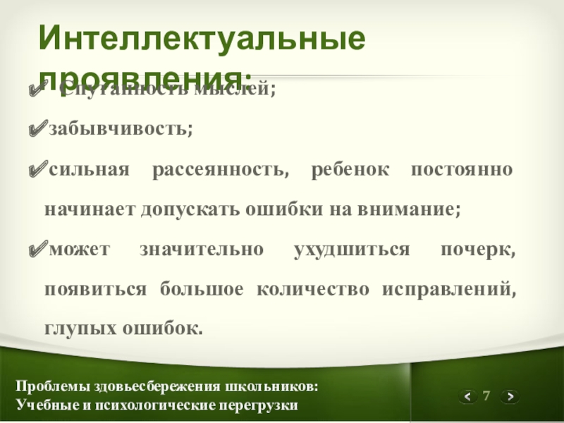 сильная рассеянность, ребенок постоянно начинает допускать ошибки на внимание;