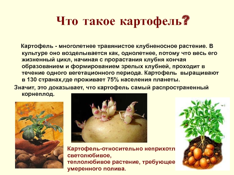 Картофель-относительно неприхотливое,светолюбивое,