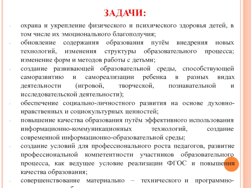 и доступное образование, обеспечение условий для личностного развития и проживания дошкольного детства, как самоценного периода жизни, охраны и укрепления его здоровья