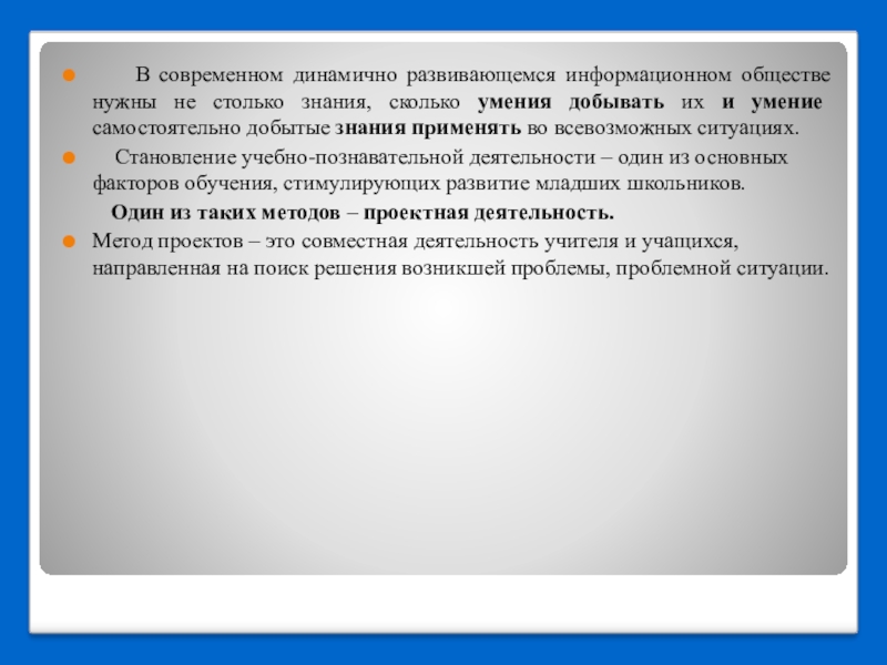 В современном динамично развивающемся информационном обществе нужны не столько