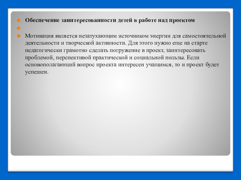 Обеспечение заинтересованности детей в работе над проектом