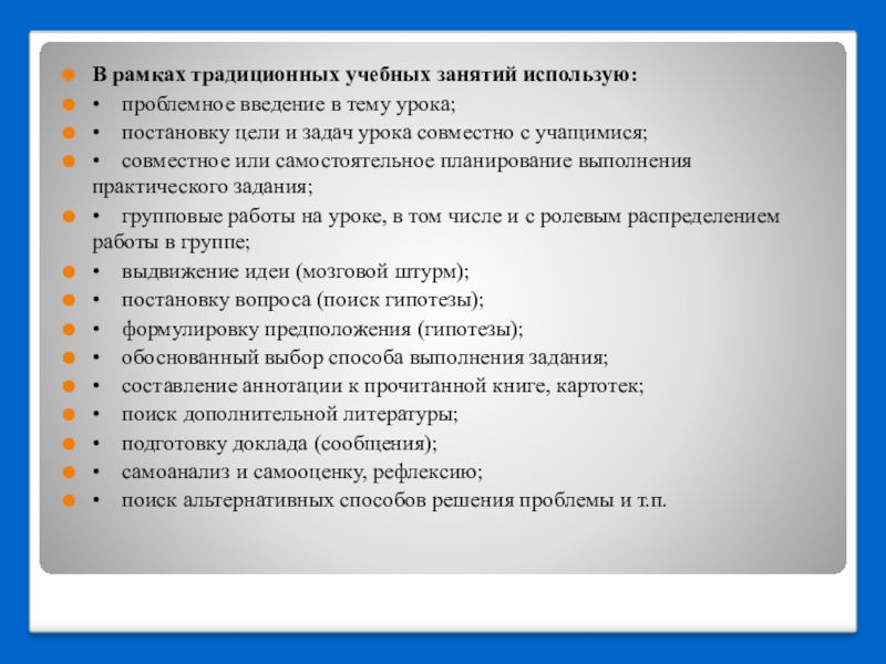 В рамках традиционных учебных занятий использую: