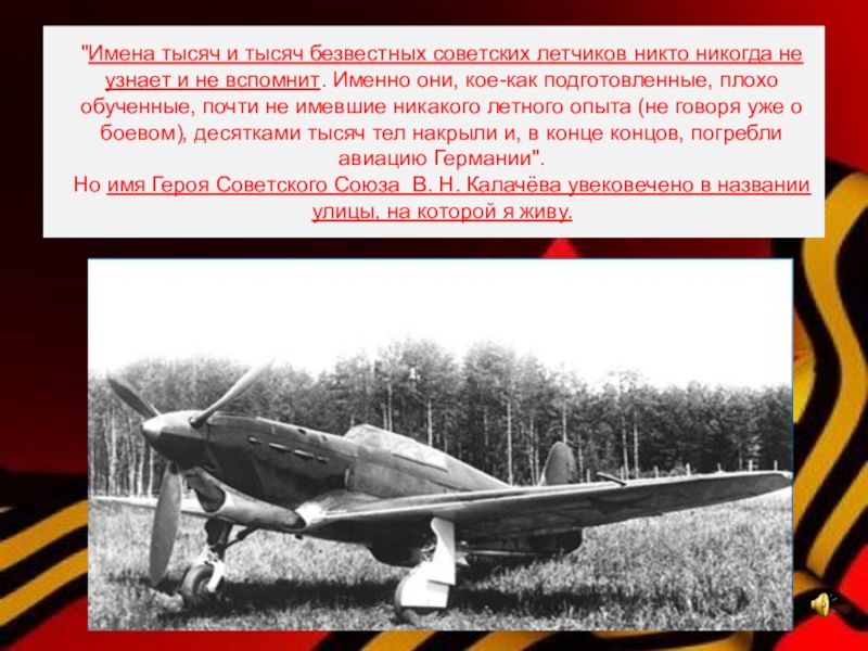 Слайд 13"Имена тысяч и тысяч безвестных советских летчиков никто никогда не узнает