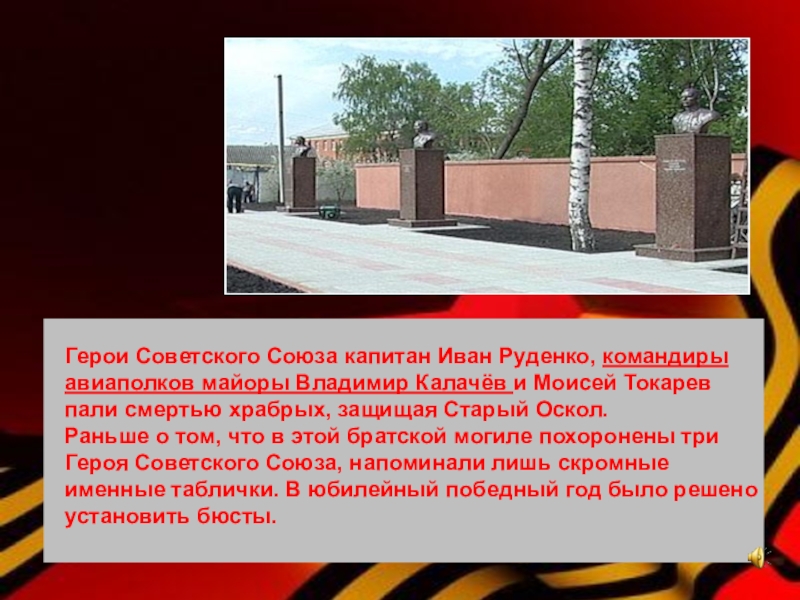 .Отметить ,как старооскольцы чтят память героев Великой Отечественной войны