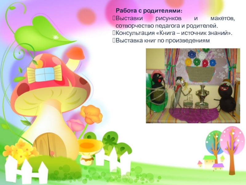 Пополнение книжного уголка произведениями писателя.