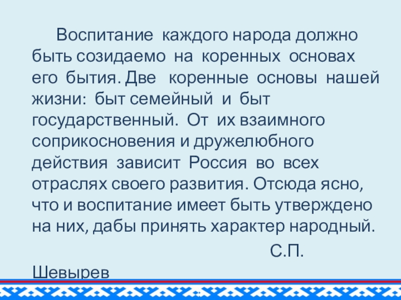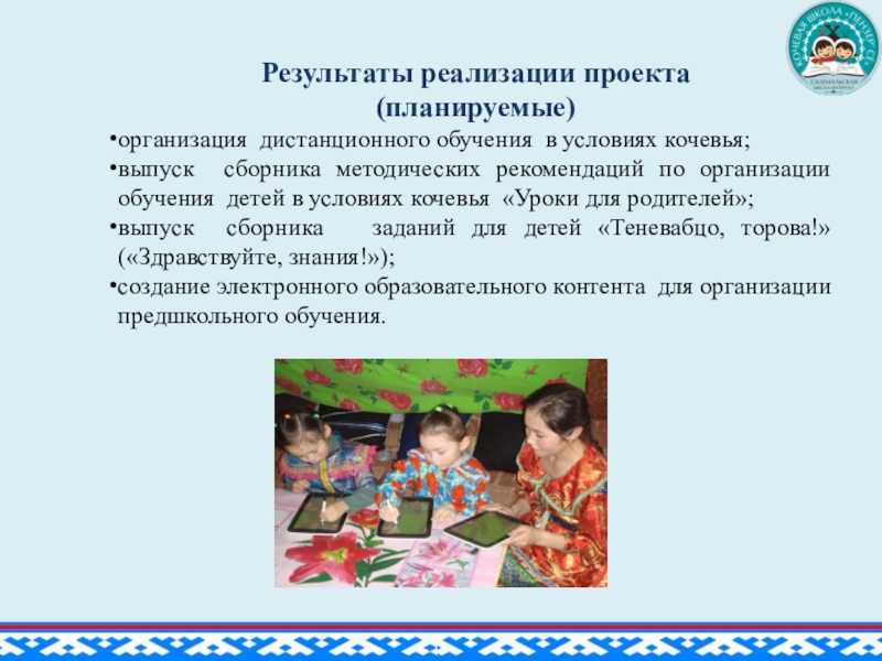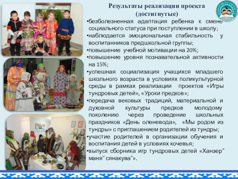 воспитывает любовь и уважение к культуре коренных жителей Севера через развитие художественно-творческих способностей детей предшкольной группы.