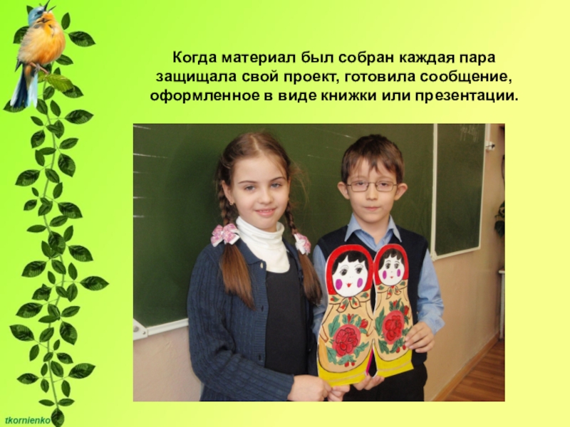 Когда материал был собран каждая пара защищала свой проект, готовила сообщение, оформленное в виде книжки или презентации.