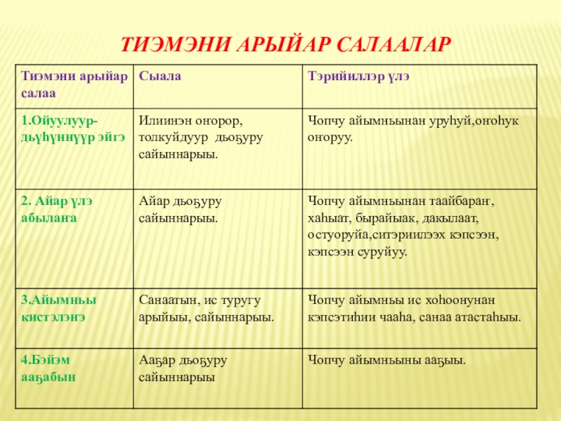 Тиэмэни арыйар салаалар: