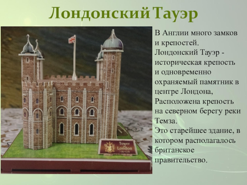 В Англии много замков и крепостей. Лондонский Тауэр -историческая крепость