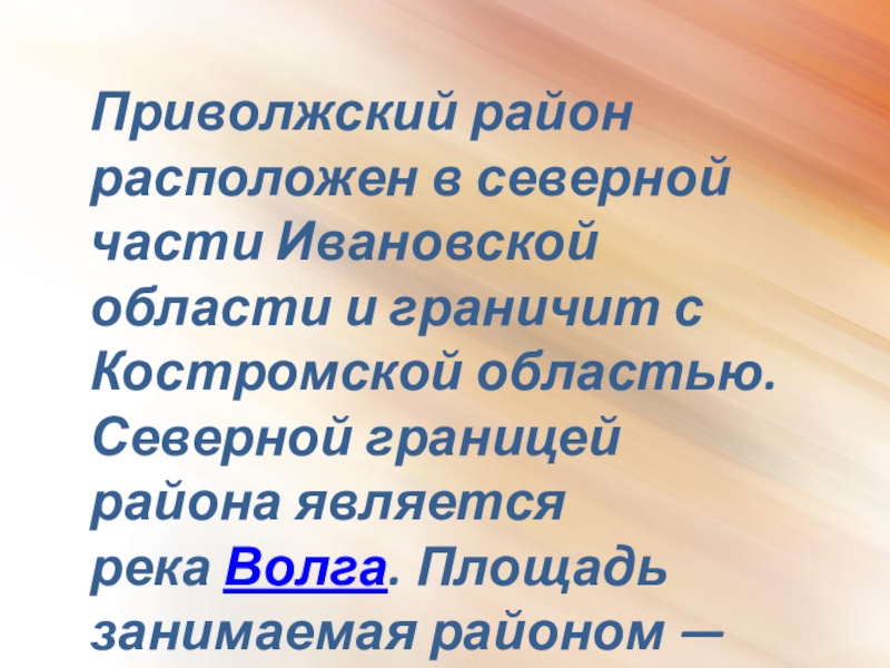 Слайд 5Приволжский район расположен в северной части Ивановской области и граничит с