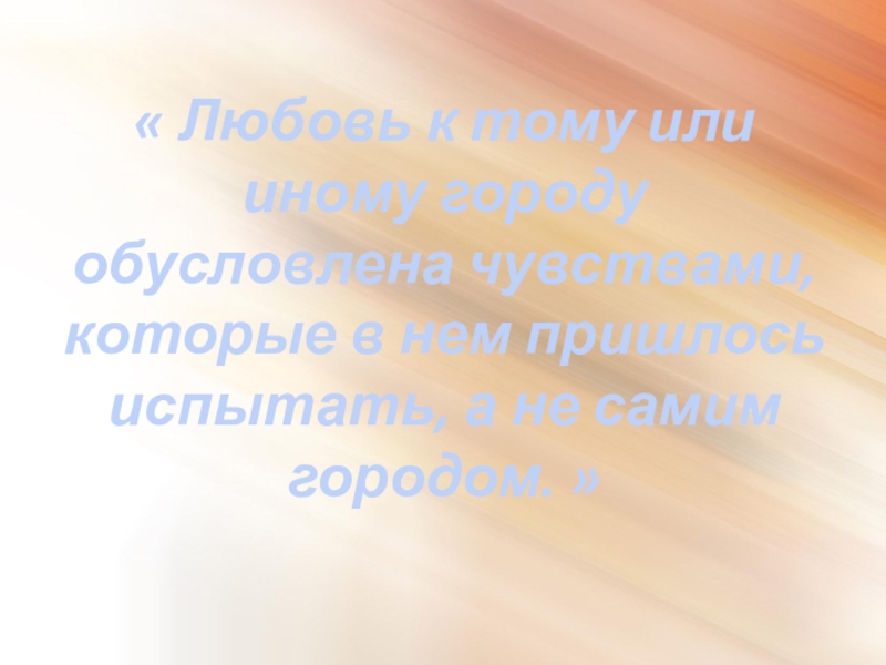 Слайд 4« Любовь к тому или иному городу обусловлена чувствами, которые в нем пришлось испытать,